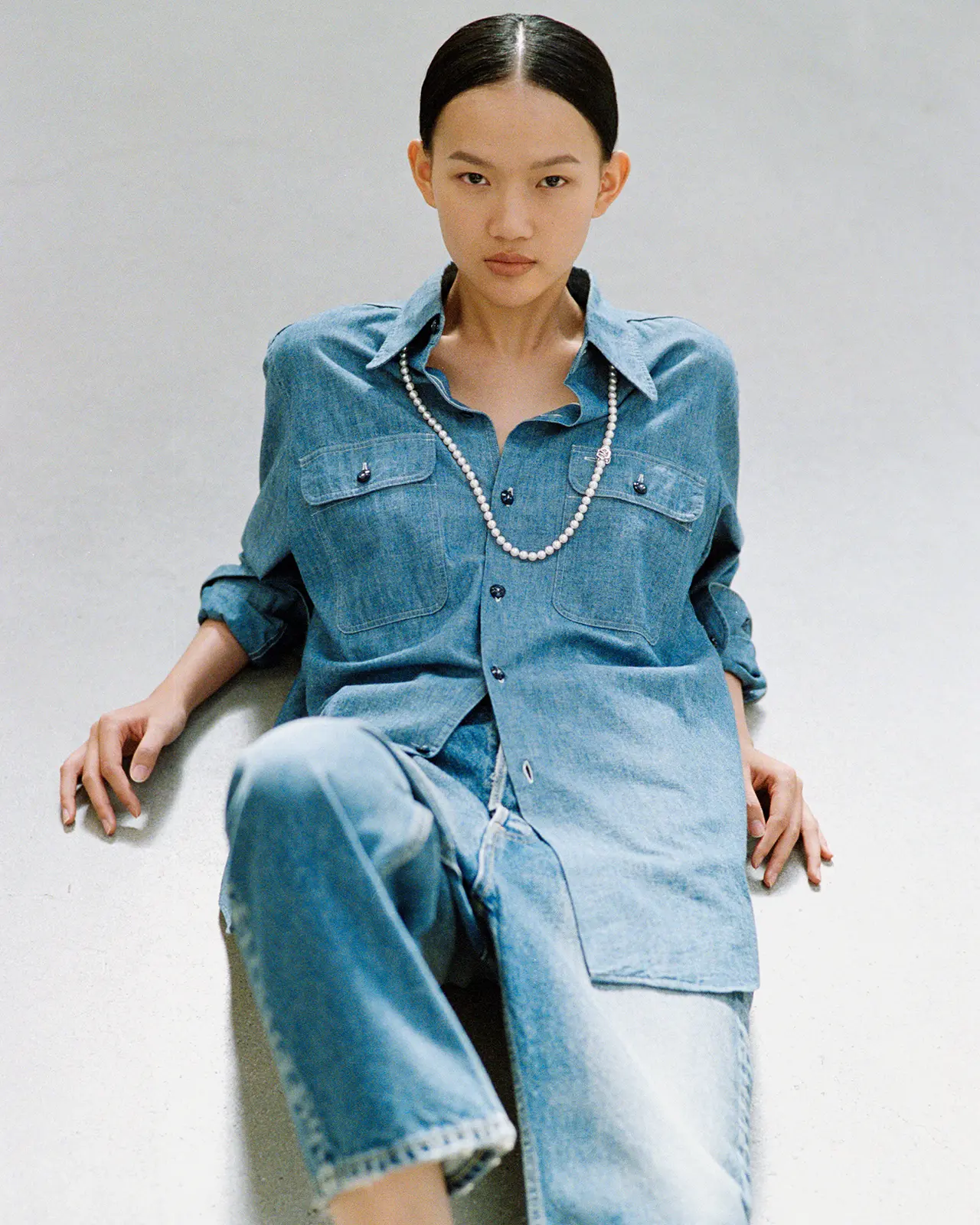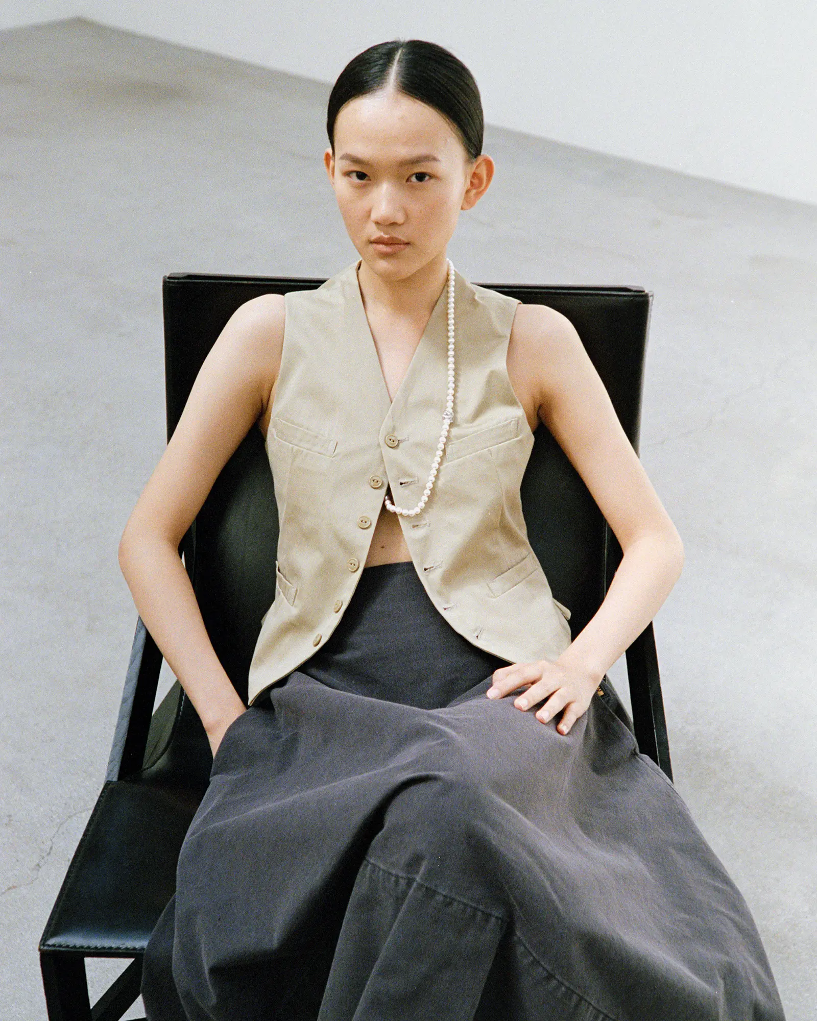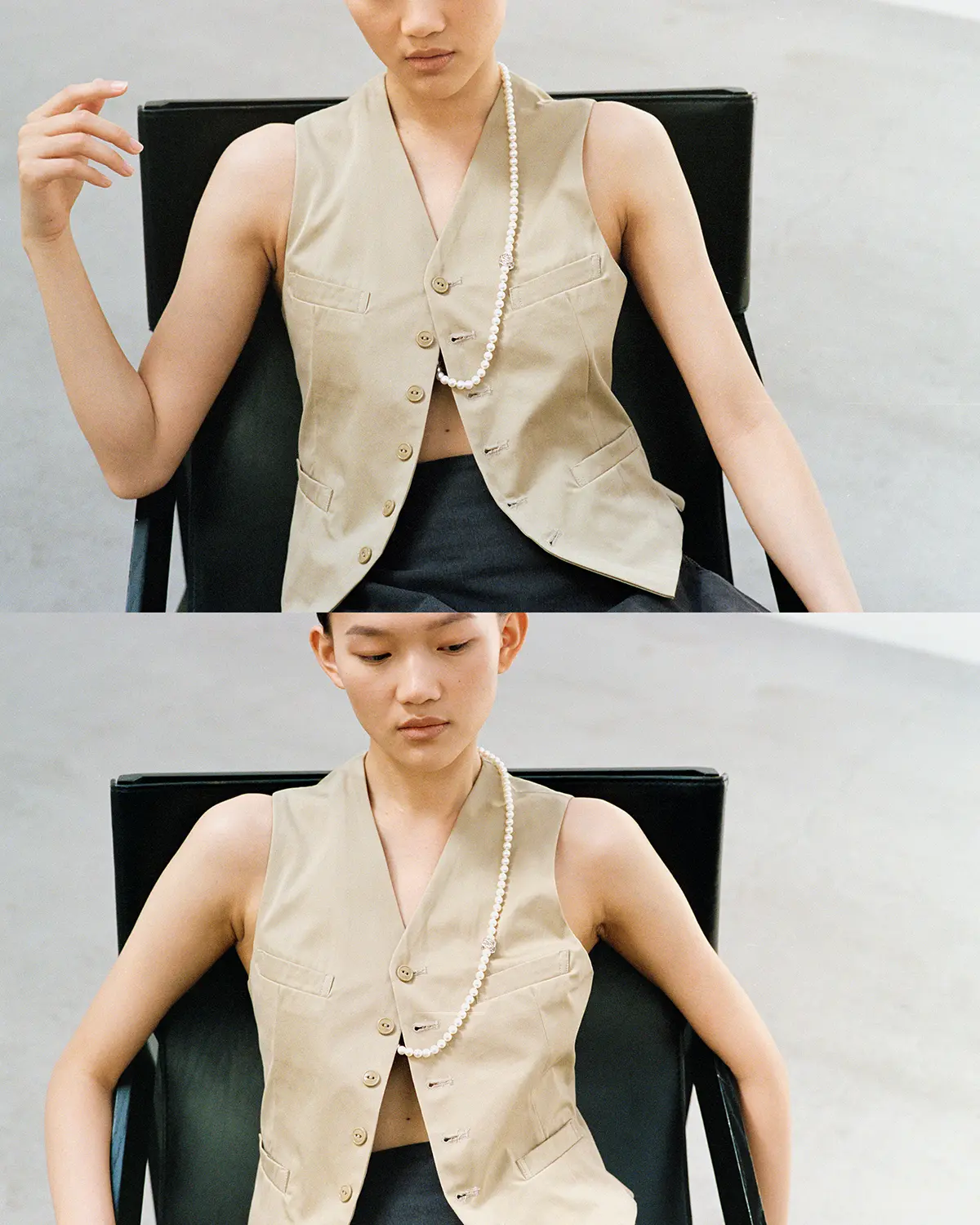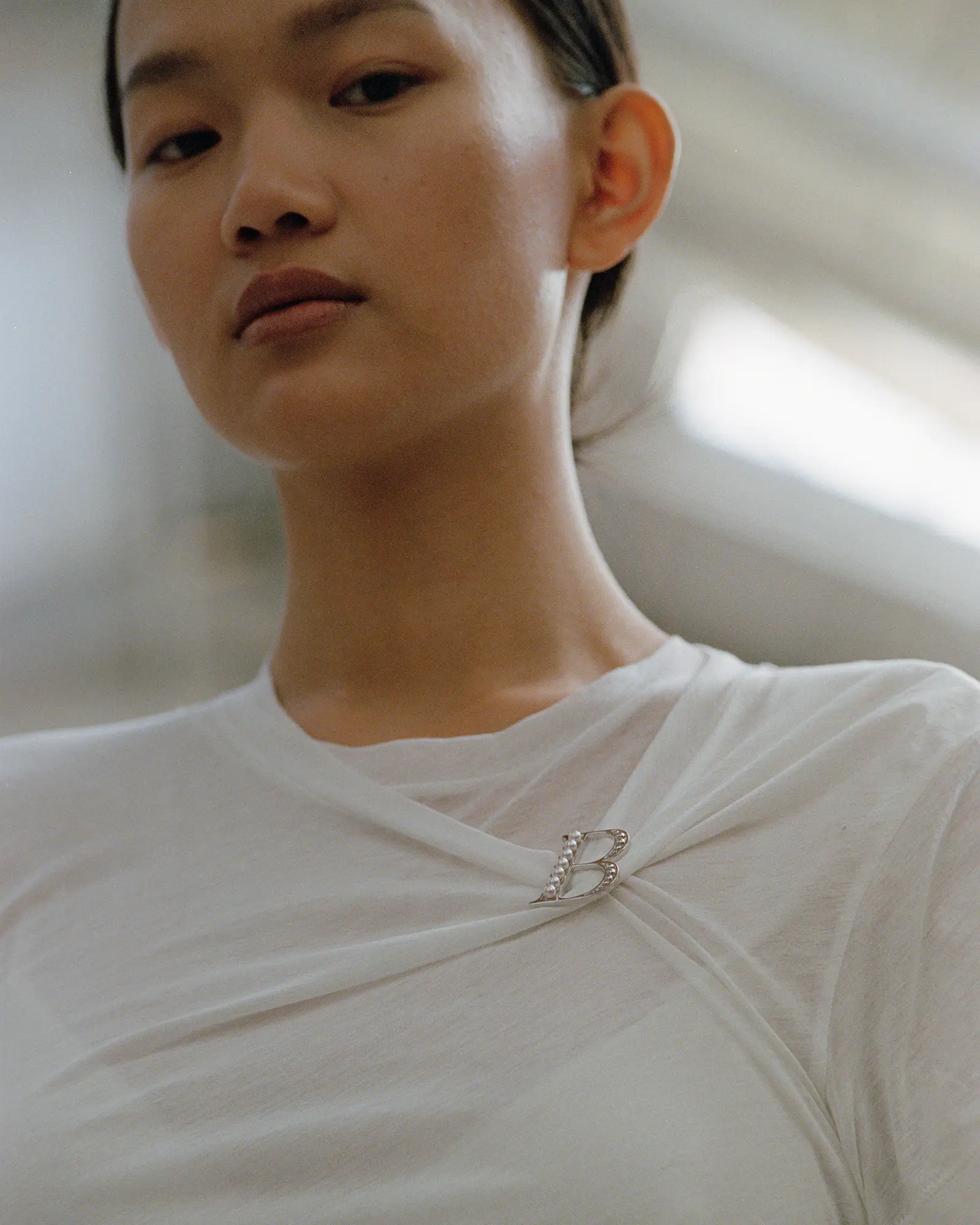 The soft white unique to uncolored pearls quietly shifts its expression against the skin and in the light. The arrangement, with its subtle spacing, creates a supple movement around the neckline, blending naturally with the curve of the collarbone. Derived from the French word ‘grigri’ (amulett), MADISONBLUE’s pearls blend into your daily attire like a second skin, quietly accompanying your staple wardrobe.