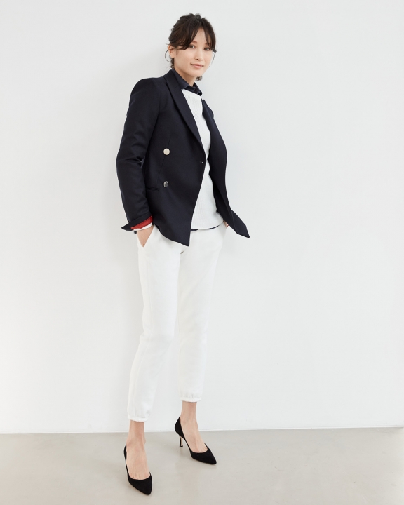 シルバーのメタルボタンがクールな印象の