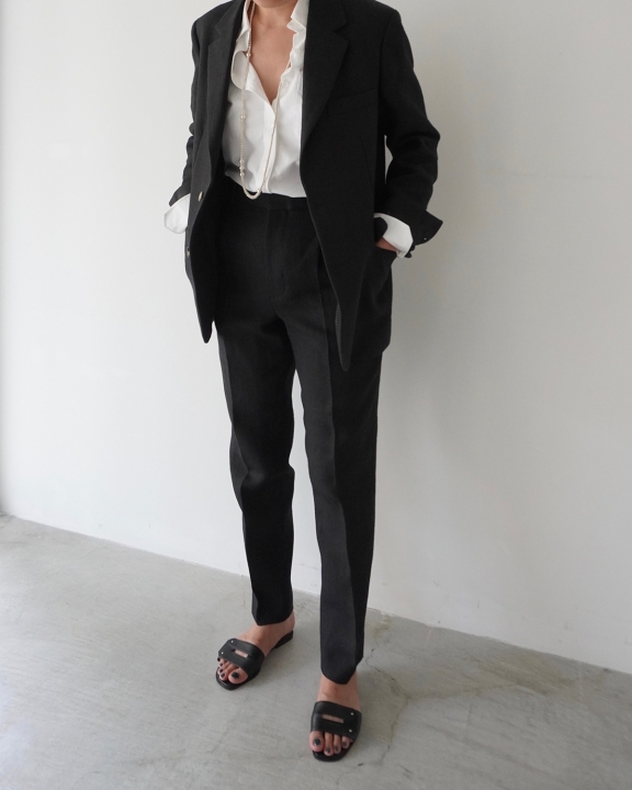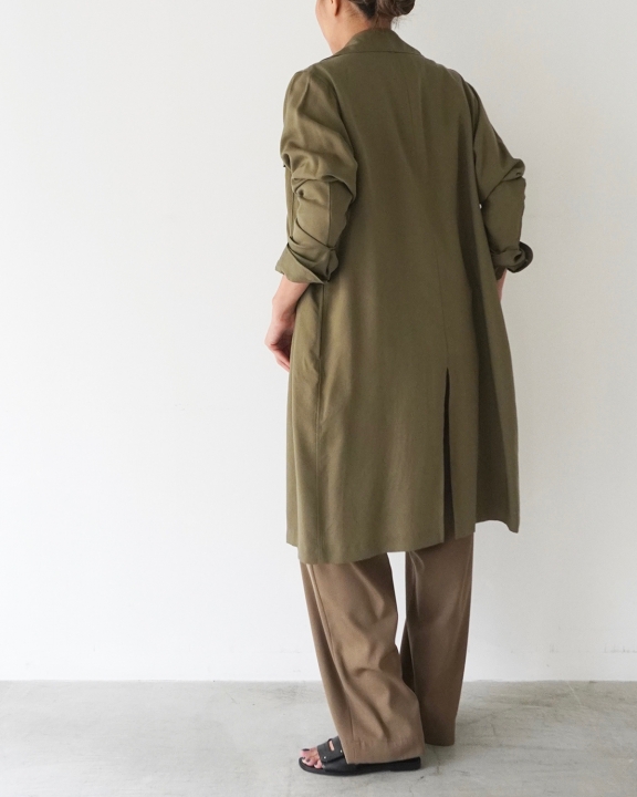 艶が美しいシャツに同色のシャツコートを重ねて。